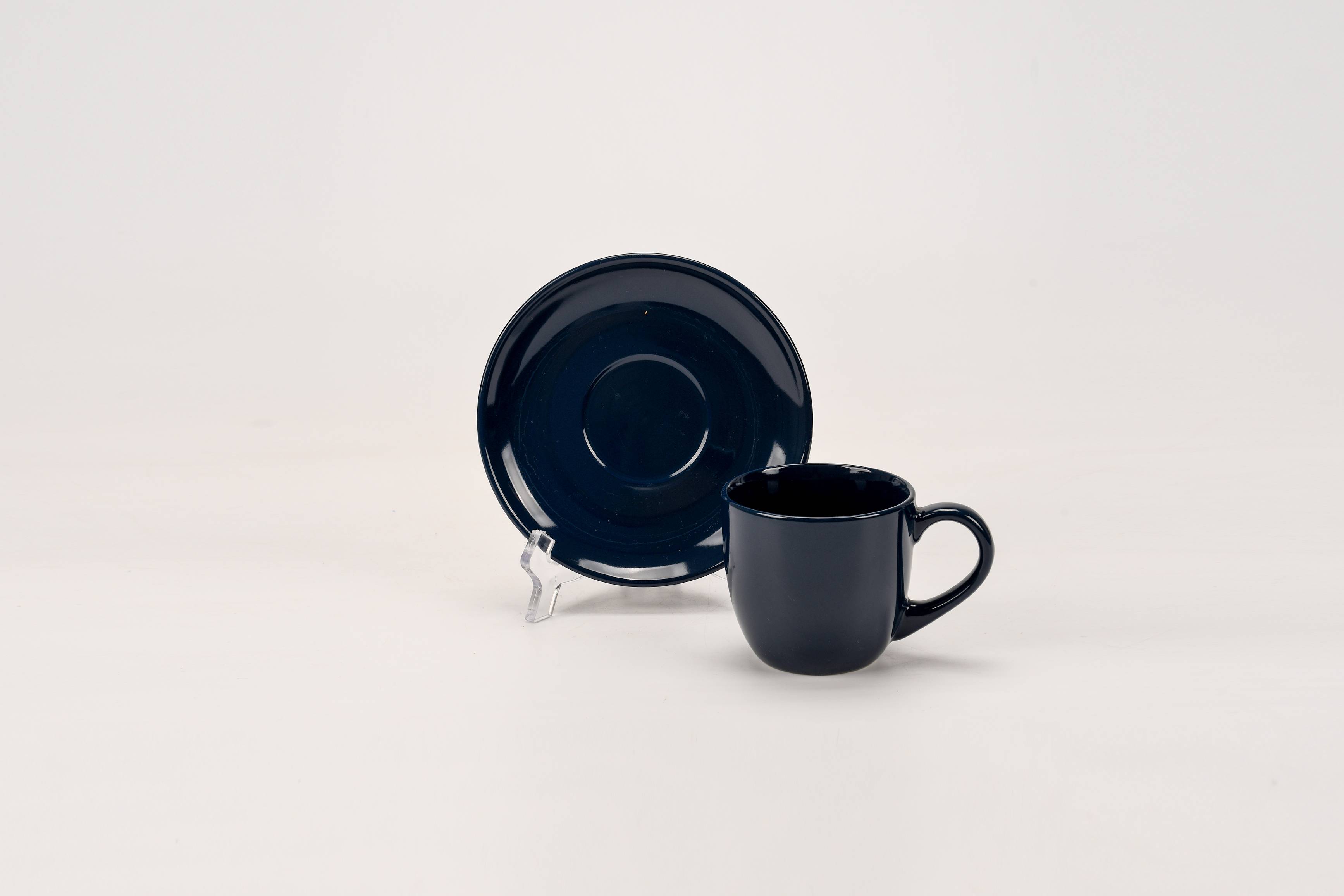 The Navy Blue Glaze coffee cup and saucer is crafted with a deep navy matte glaze. The cup has a round and comfortable grip, paired with a matching saucer, making it a textured choice for morning coffee and afternoon tea, adding a touch of calm elegance to life.